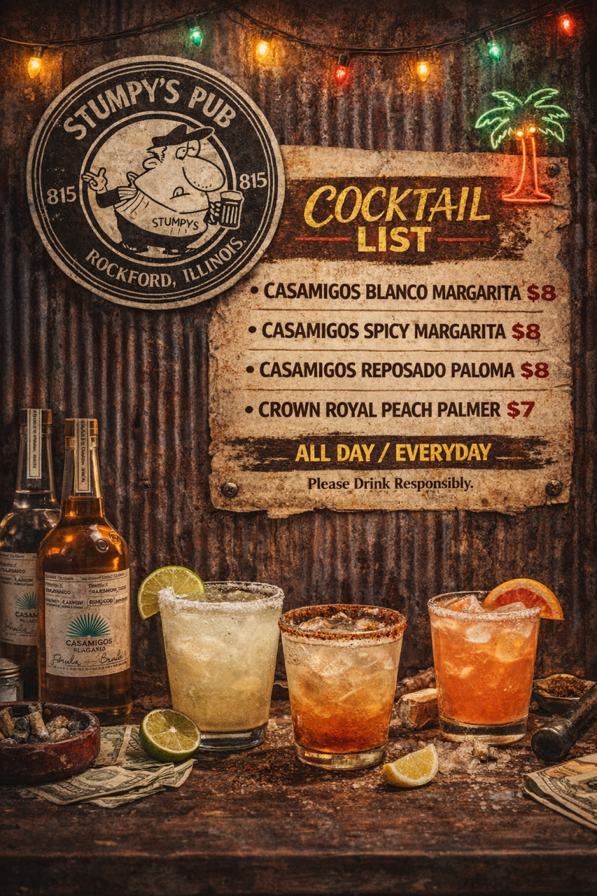 Join us at Rockford's "Chillest" 5-star dive bar for an unforgettable drinking experience. Cheers to good times and great drinks!